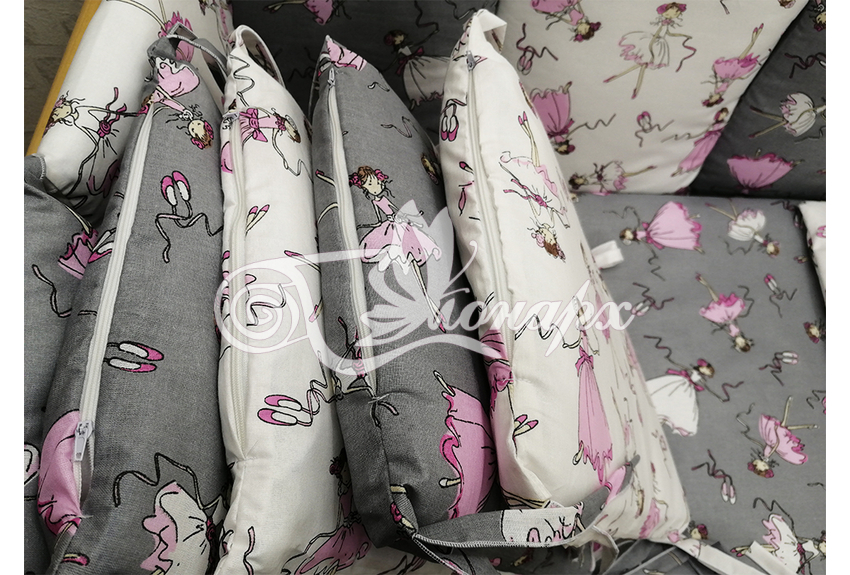 Бортик составной: 12 подушек 31х34 см на замочках упакованы в сумку-переноску.