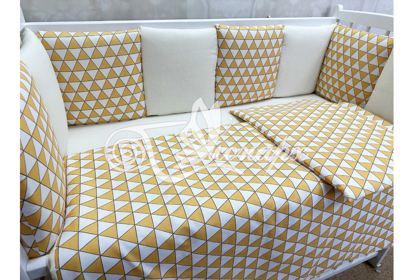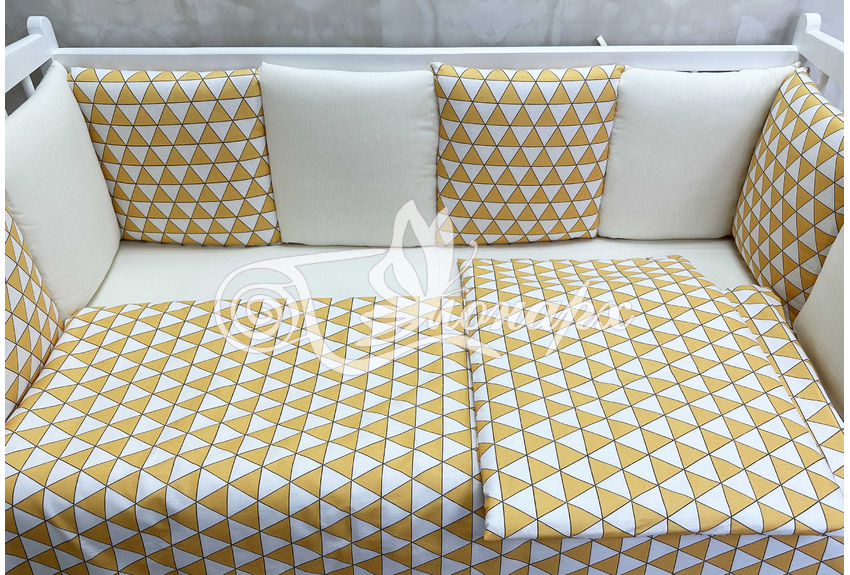 Бортик составной: 12 подушек 31х34 см на замочках упакованы в сумку-переноску.
