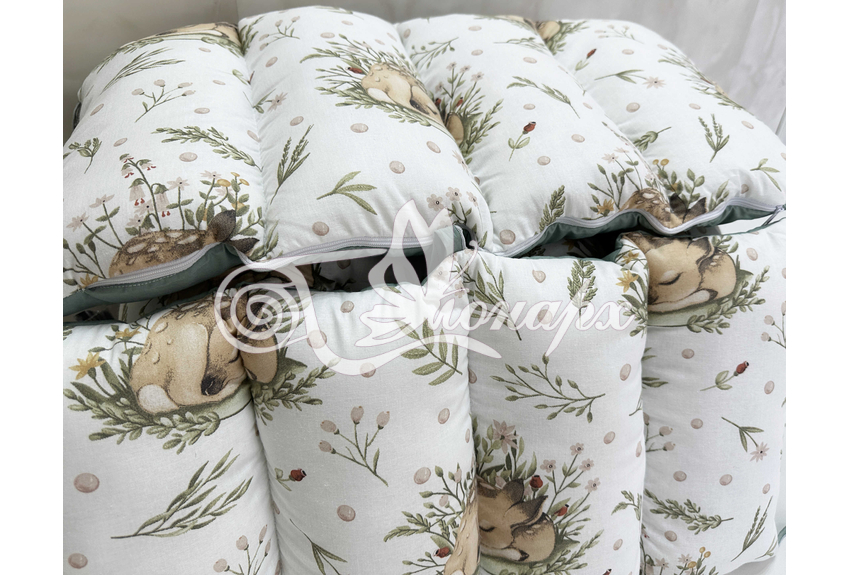 - Бортик-заборчик стеганый с синтепоном, плотно забит синтепухом (на замочках):