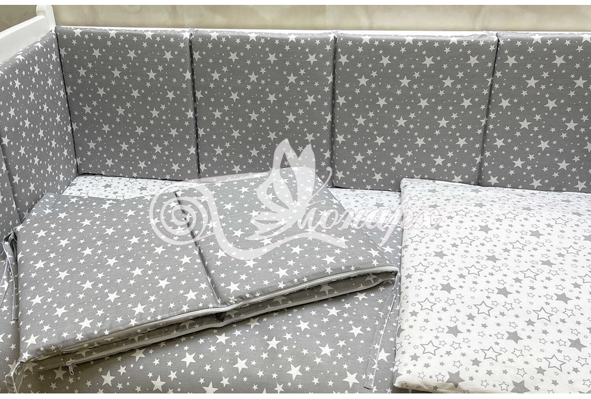 Бортики СО СЪЕМНЫМИ ЧЕХЛАМИ в кроватку: защитят Вашего малыша от ушибов, сквозняков, солнечных лучей и не дадут малышу запутаться в прутьях кроватки.