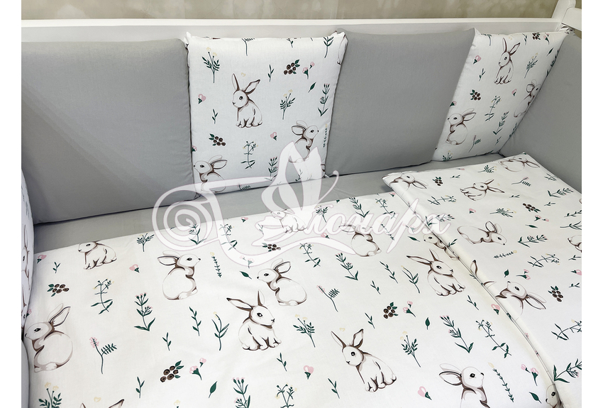Бортик составной: 12 подушек 31х34 см на замочках упакованы в сумку-переноску.