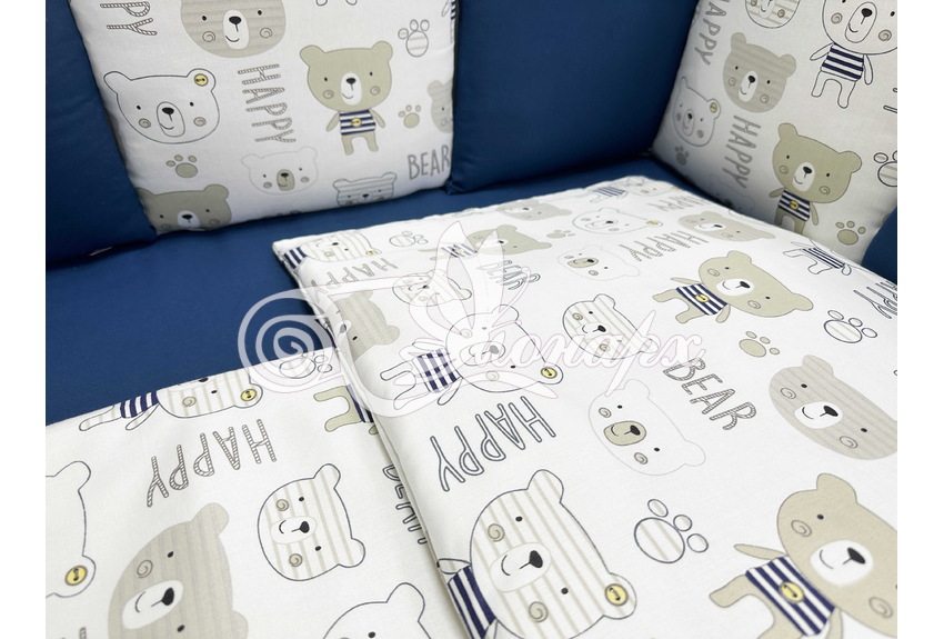 Бортик составной: 12 подушек 31х34 см на замочках упакованы в сумку-переноску.