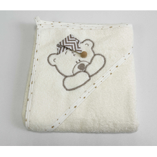 Полотенце с капюшоном и рукавичкой Вышивка (молочный)