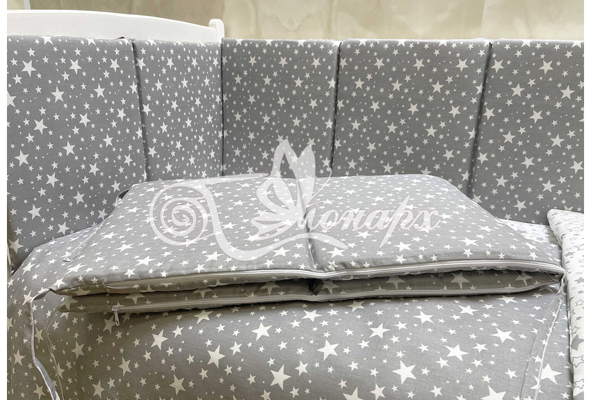 Бортики СО СЪЕМНЫМИ ЧЕХЛАМИ в кроватку: защитят Вашего малыша от ушибов, сквозняков, солнечных лучей и не дадут малышу запутаться в прутьях кроватки. - Простыня на резинке 60х120 см (подходит для стандартной кроватки)
