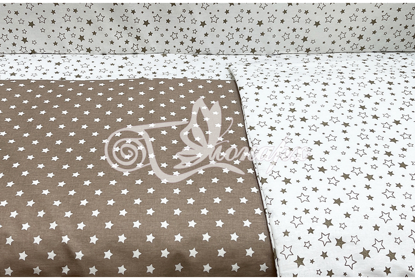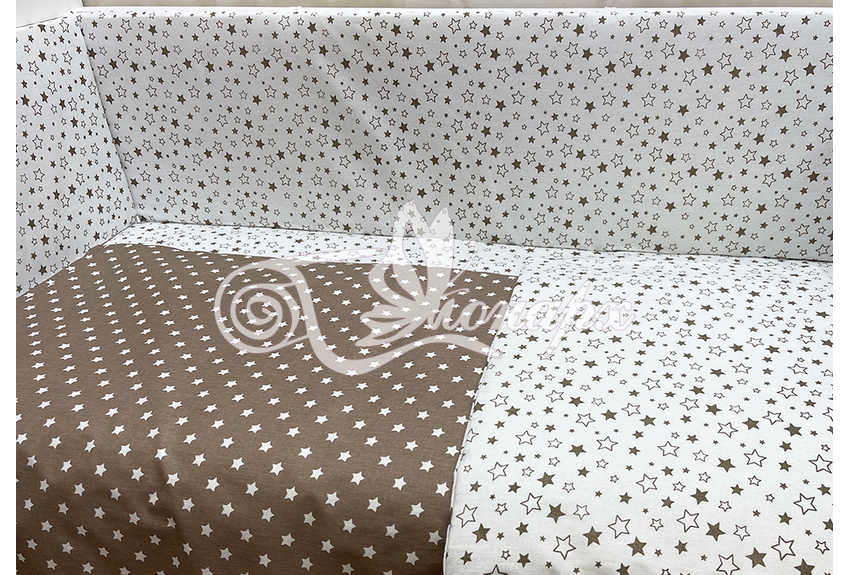 Бортики СО СЪЕМНЫМИ ЧЕХЛАМИ в кроватку: защитят Вашего малыша от ушибов, сквозняков, солнечных лучей и не дадут малышу запутаться в прутьях кроватки. - Простыня на резинке 60х120 см (подходит для стандартной кроватки)