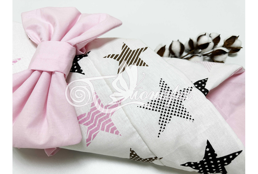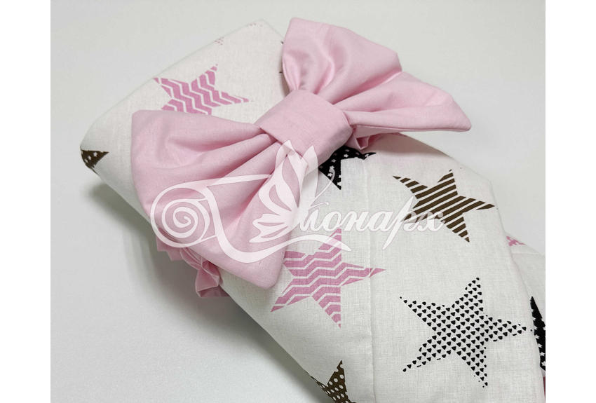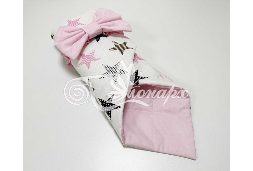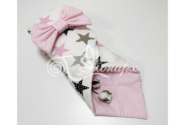 ​Конверт фиксируется поясом на резинке с бантом.