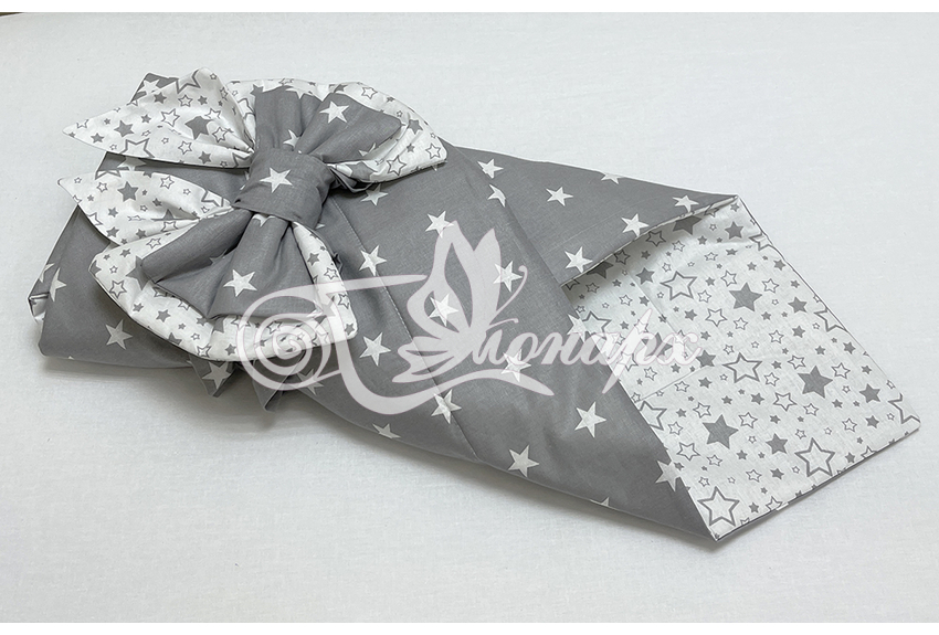 ​Конверт фиксируется поясом на резинке с бантом.